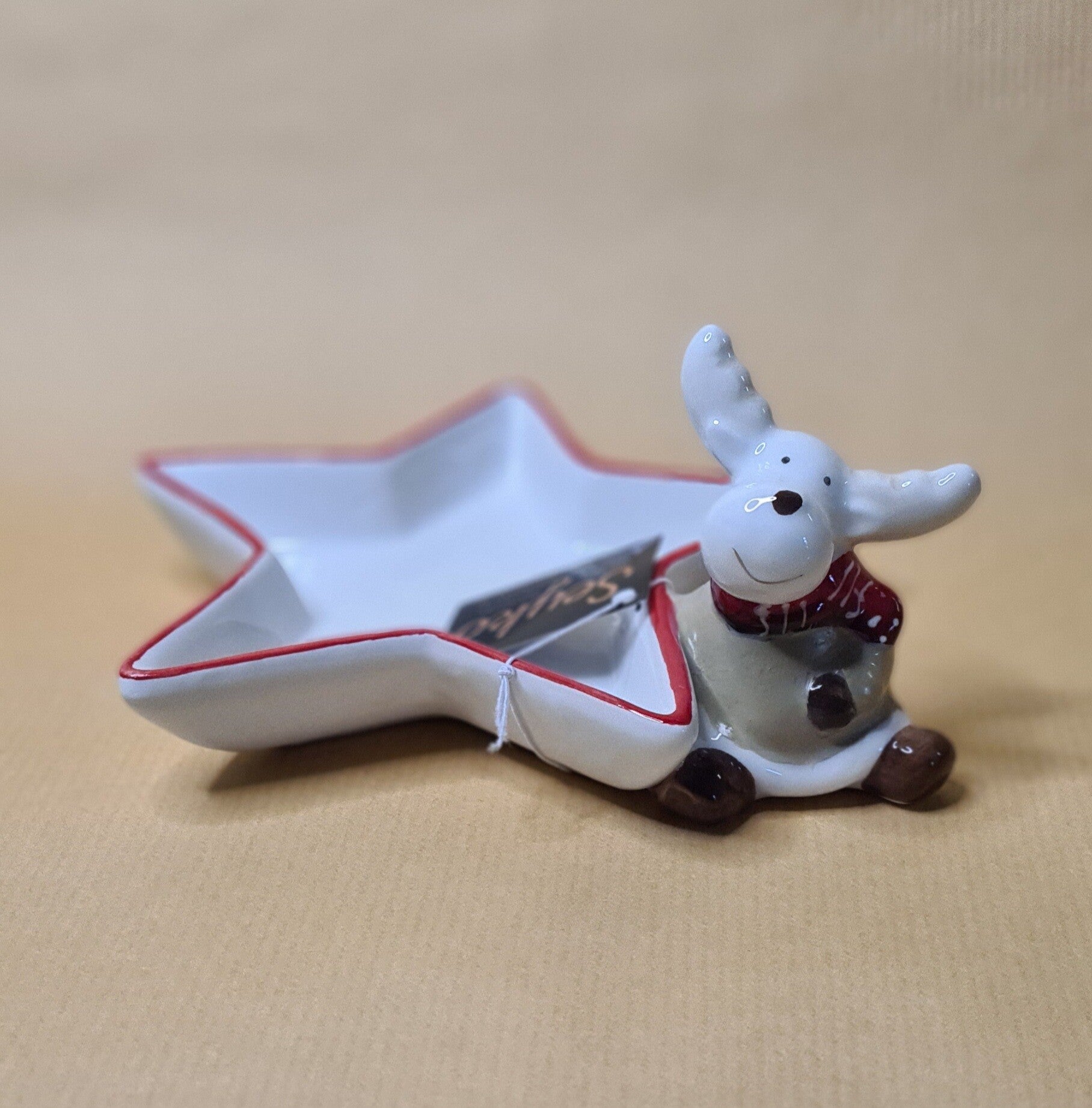 Deko-Schale "Stern mit Elch"Material: KeramikGröße: ca. 14,7 x 7,5 cmAnfragen zum Produkt bitte nur über unser Formular: Kontakt