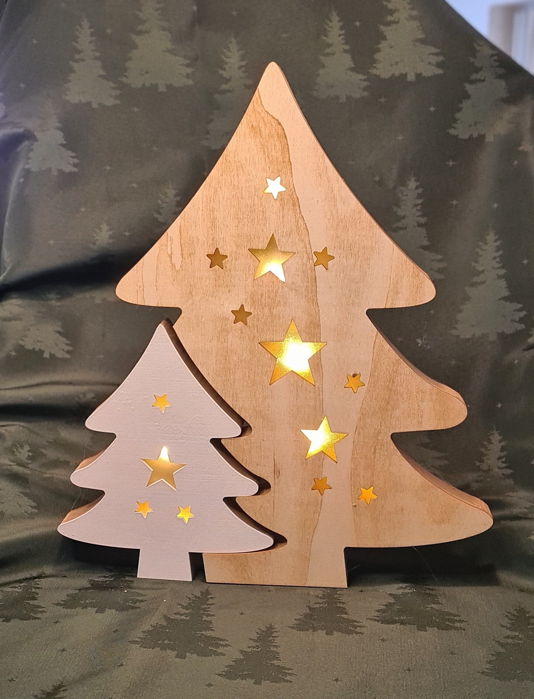 Doppelweihnachtsbaum, Holz mit LED + TimerBatterie nicht enthalten)