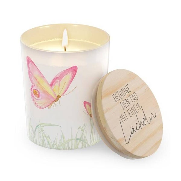 Die Kerze enthält 70% Sojawachs und hat eine Brenndauer von ca. 30 Stunden.