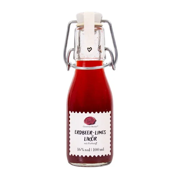 "Flaschenkinder": Erdbeer-Limes Likör (mit Farbstoff)