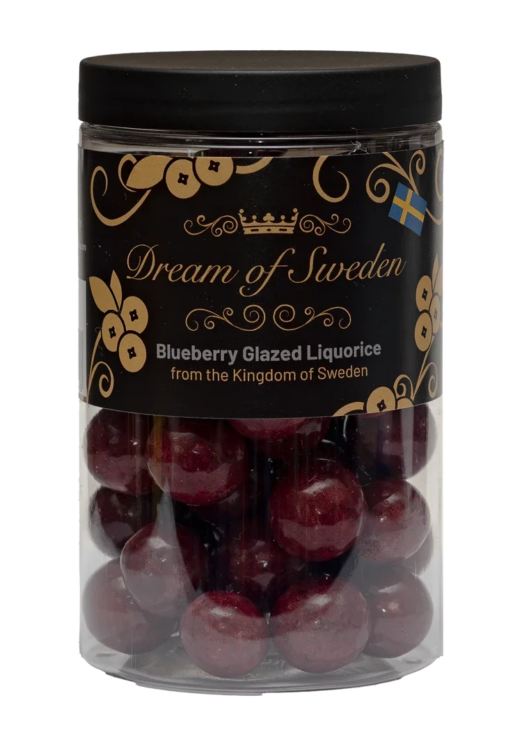 Der unverwechselbare Mix aus würzigem Lakritzkern, dragiert mit weißer Schokolade und aromatischen Blaubeeren – diese Dragées aus Schweden sind eine besondere Delikatesse. Das kräftige Lakritz verbindet sich mit der milden Süße der Schokolade und der fruchtigen Frische der Blaubeere zu einem außergewöhnlich harmonischen Geschmackserlebnis.